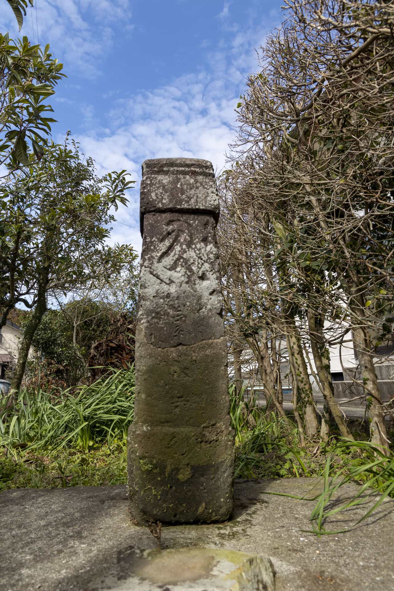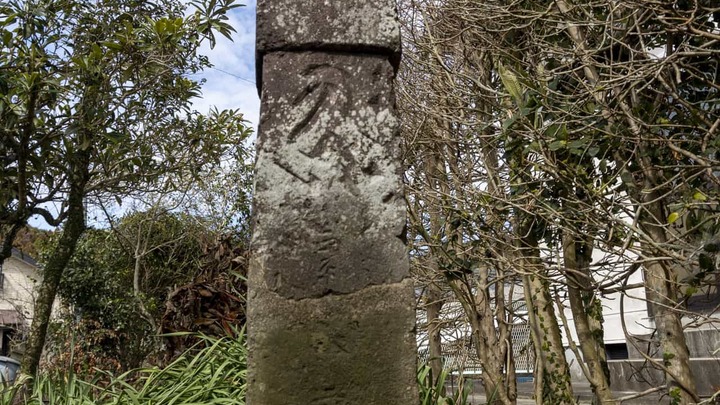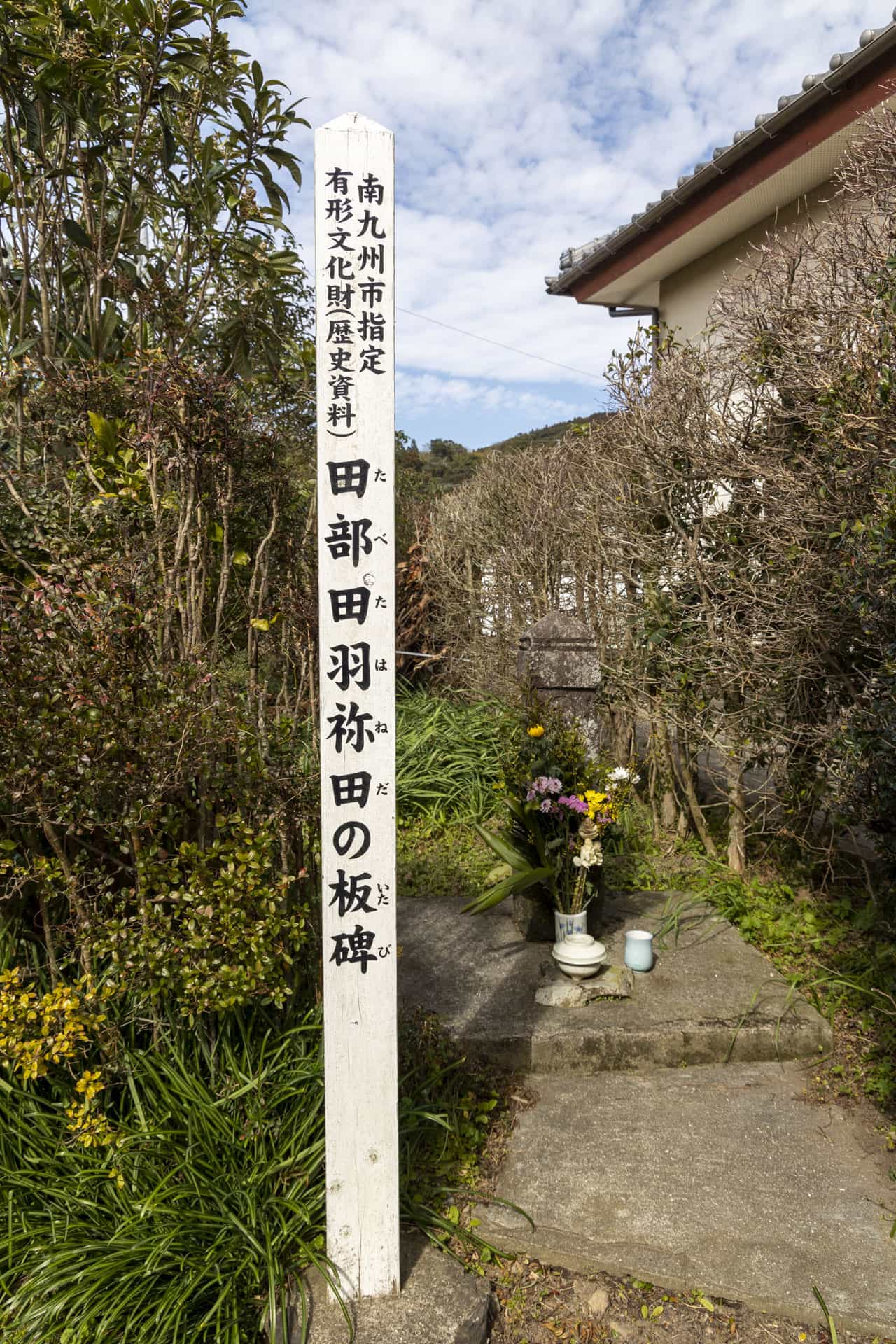 南九州市指定文化財(有形歴史資料)田部田研修館西側にあり、南北朝時代の正平8年に建立された板碑で、阿弥陀如来を表す「キリーク」の梵字が刻まれている。建立者や目的は、不明とされるが、合戦の戦死者の供養のために建立されたと推定されている。また、完全な形の板碑は、他に確認されていないことから大変貴重なものである。
