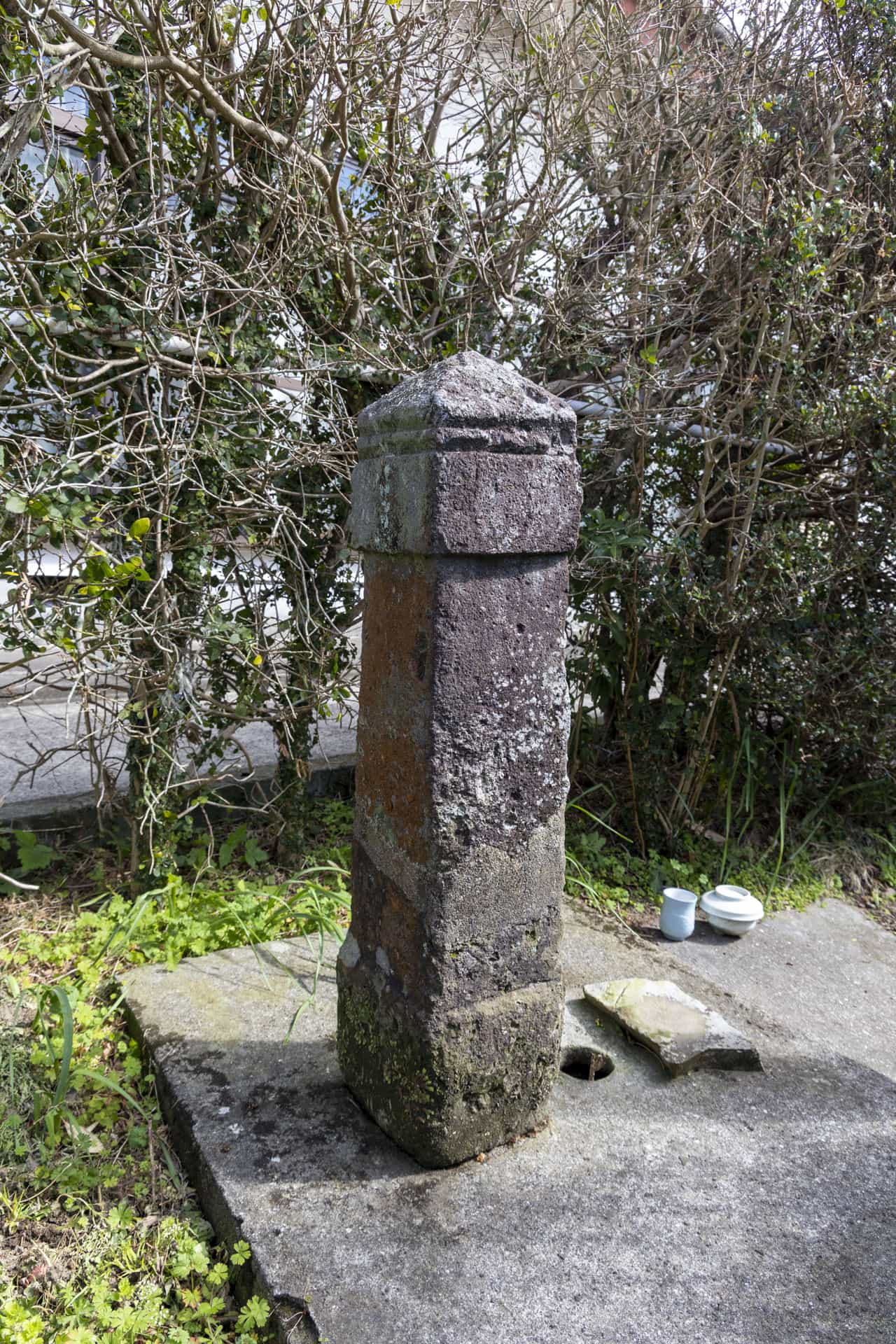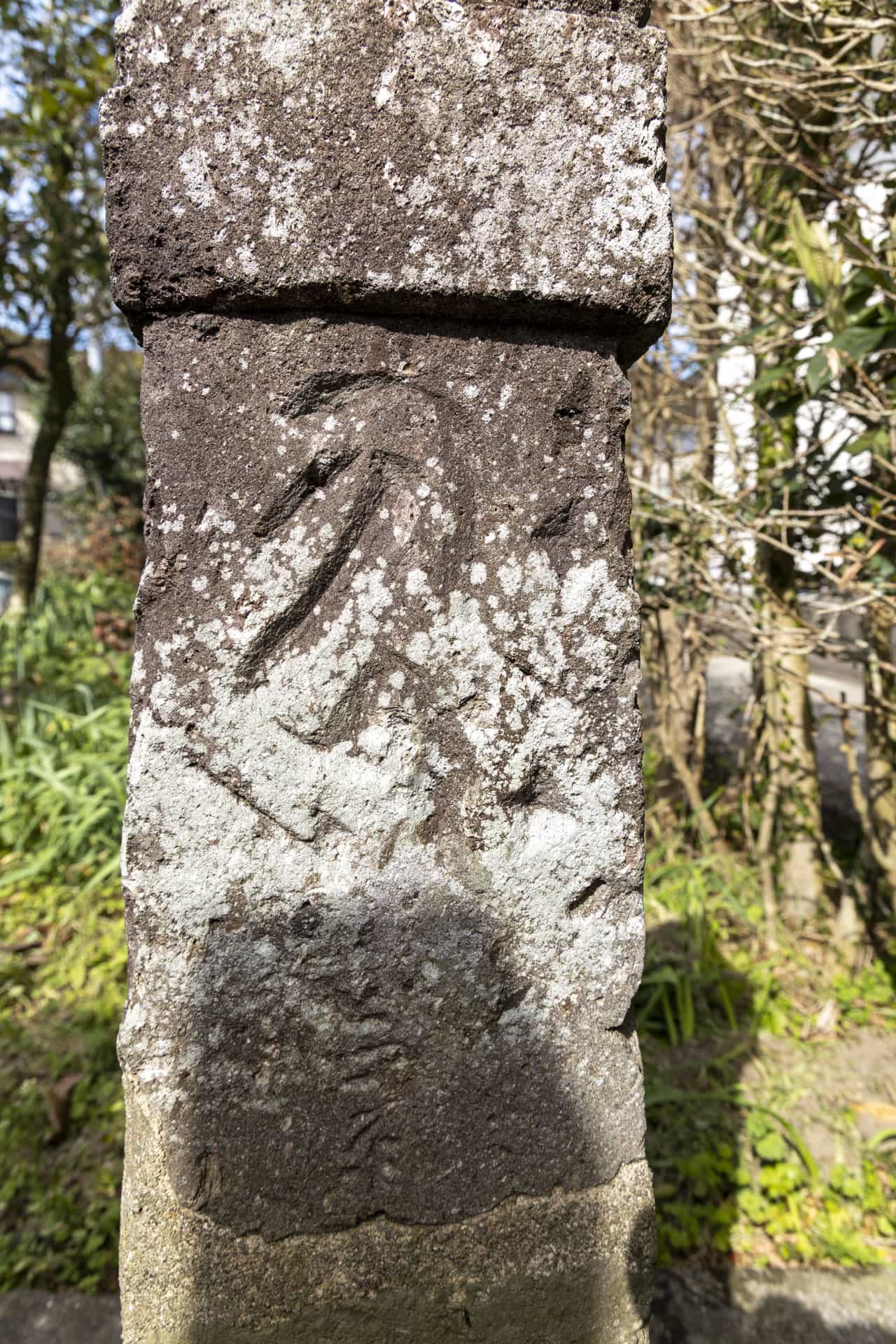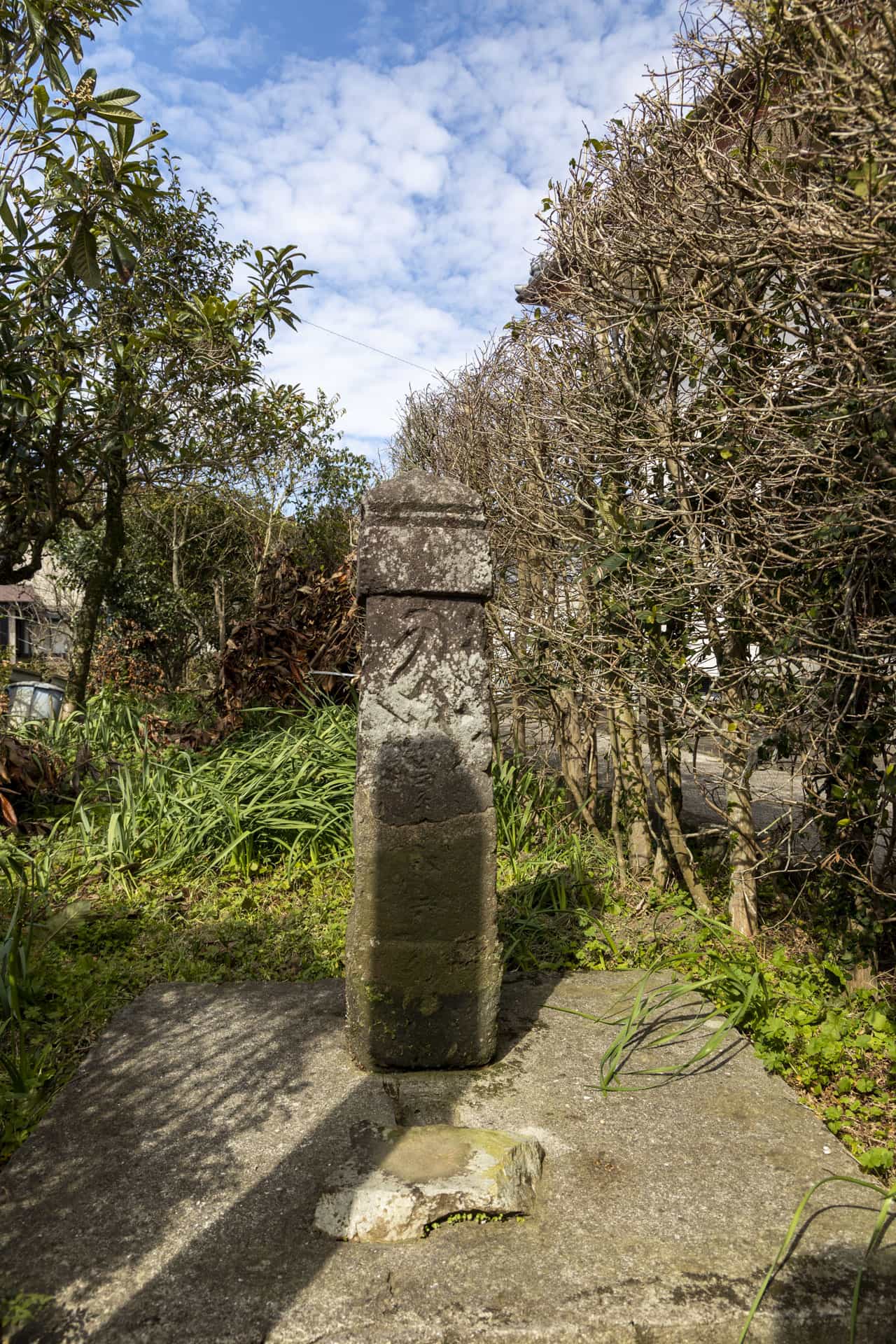 南九州市指定文化財(有形歴史資料)田部田研修館西側にあり、南北朝時代の正平8年に建立された板碑で、阿弥陀如来を表す「キリーク」の梵字が刻まれている。建立者や目的は、不明とされるが、合戦の戦死者の供養のために建立されたと推定されている。また、完全な形の板碑は、他に確認されていないことから大変貴重なものである。