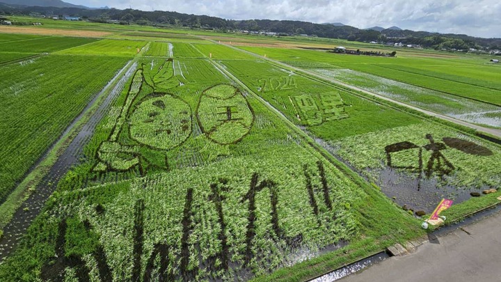7月20日よりヤグラ解放しています。だんだんと稲の色がハッキリしてきました。お盆までが色が鮮明に見えます。その後は、稲穂が出て来ますので、また違ったアートがご覧頂けます。8月12日(月)の夕方5時より田んぼアート圃場にて「田んぼアート鑑賞会&夕涼み会」を開催しますのでご来場下さい。打ち上げ花火もあります。